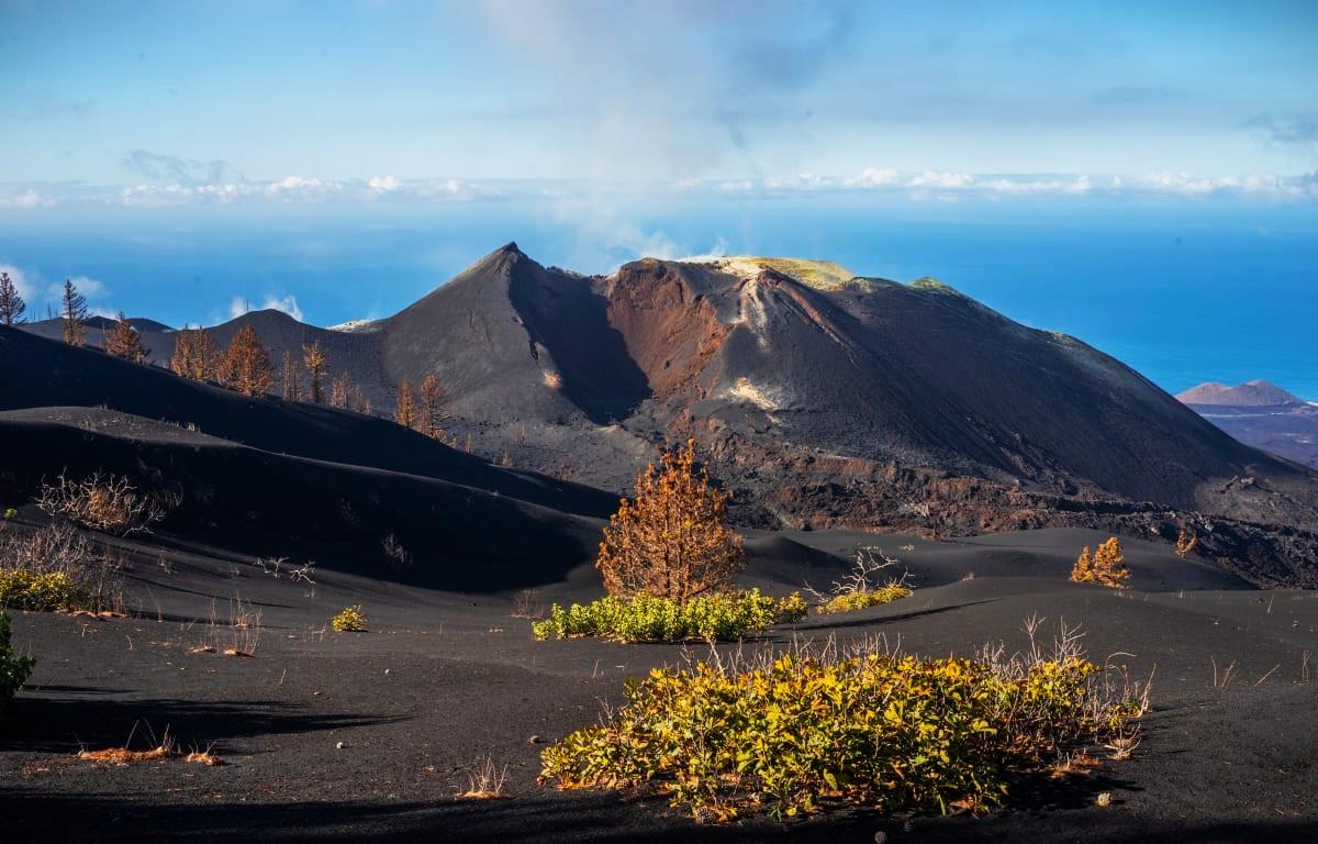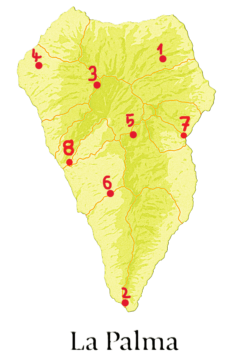 Tour 6: Vulkanlandschaft am Tajogaite – ein echtes Novum: Die bei Ausbruch 2021 entstandene Landschaft ist ein geologisches Highlight! Zuerst vom Aussichtspunkt, später aus der Vogelperspektive, bestaunen wir den jungen Vulkan und die Zeugnisse seiner Zerstörungskraft über die Insel, aber auch erste Spuren neuen Lebens können wir entdecken.