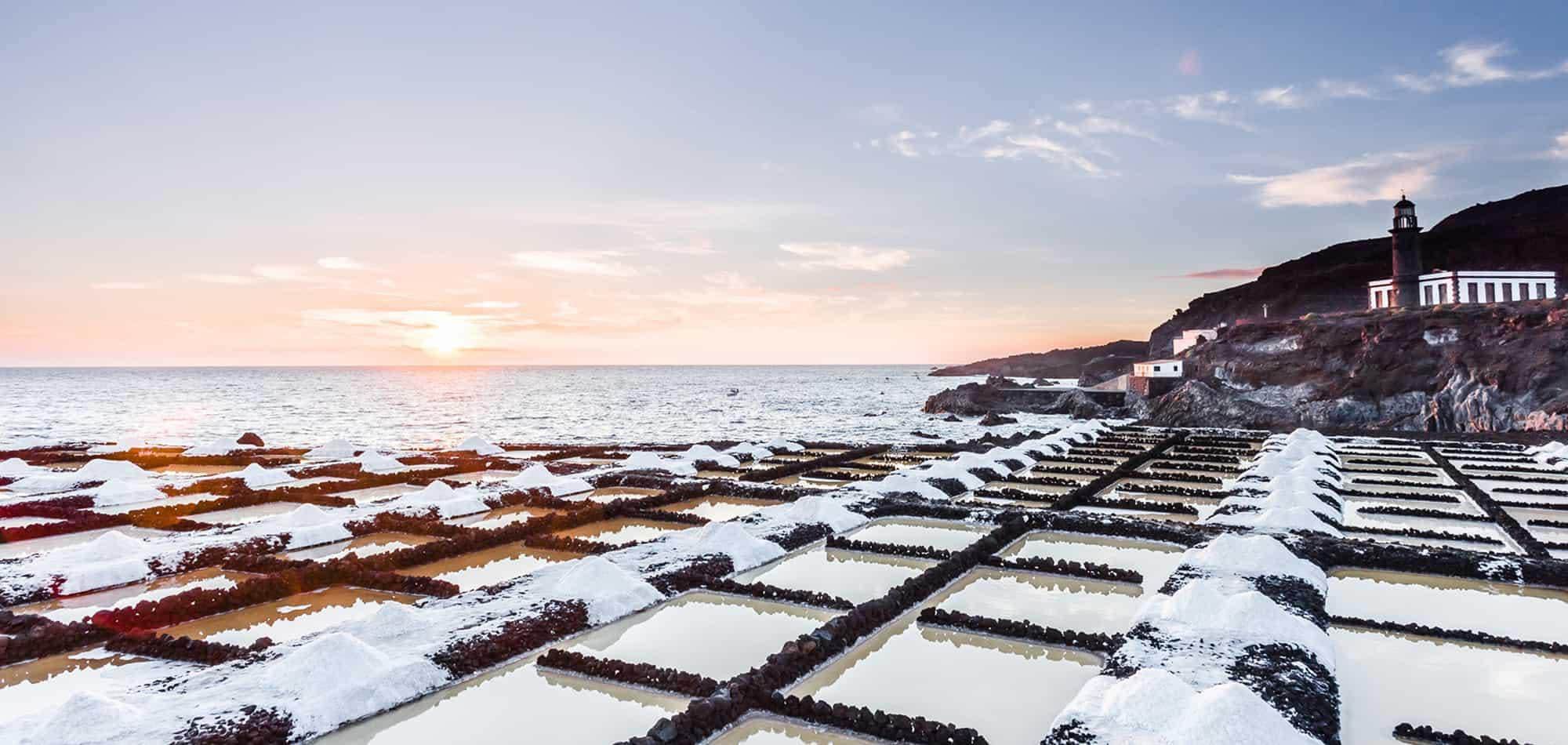 Tour 2: Vulkane & Salinen mit Blick vom Vulkan San Antonio sowie Teneguía: Ein eindrucksvoller Weg, der uns auf Pisten aus schwarzem Lavasand über einsam gelegene Kraterränder schickt. Ganz unten am Leuchtturm endet unsere Tour und wir genießen das Flair der ungewohnt anmutenden Salinenlandschaft.