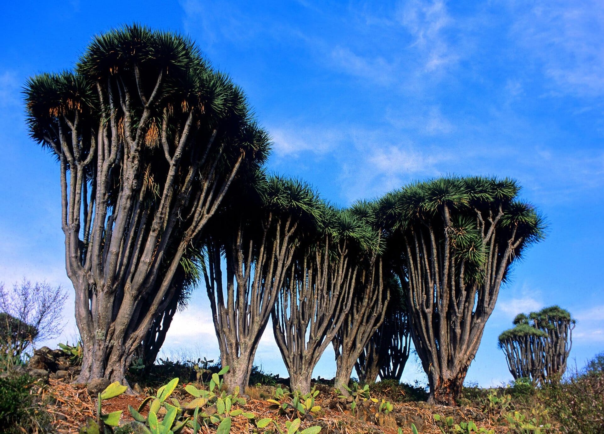 Tour 4: Nord-Schluchten und Drachenbäume im Gebiet von Las Tricias: Auf mittlerer Höhe sind wir im Nordwesten der Insel wildromantisch unterwegs zwischen Hainen aus uralten Drachenbäumen, tiefen Schluchten und üppigen Gärten.